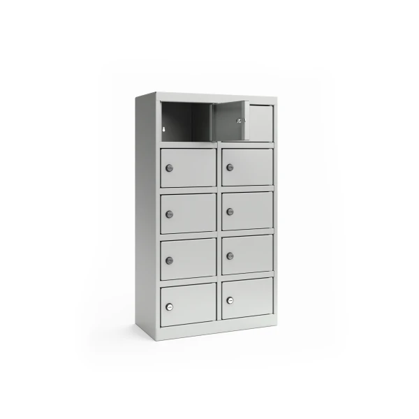 - each compartment is locked with an independent key lock with a single point locking mechanism,