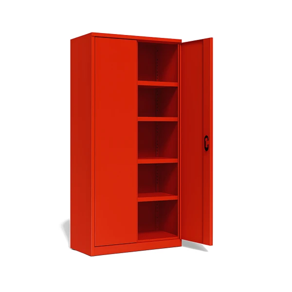 - 2-door office cabinet is provided with 4 adjustable shelves. Perforated profiles inside the cabinet enable the shelf height to be adjusted every 25 mm,