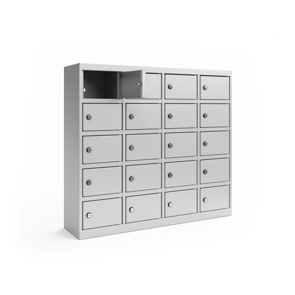 - each compartment is locked with an independent key lock with a single point locking mechanism,