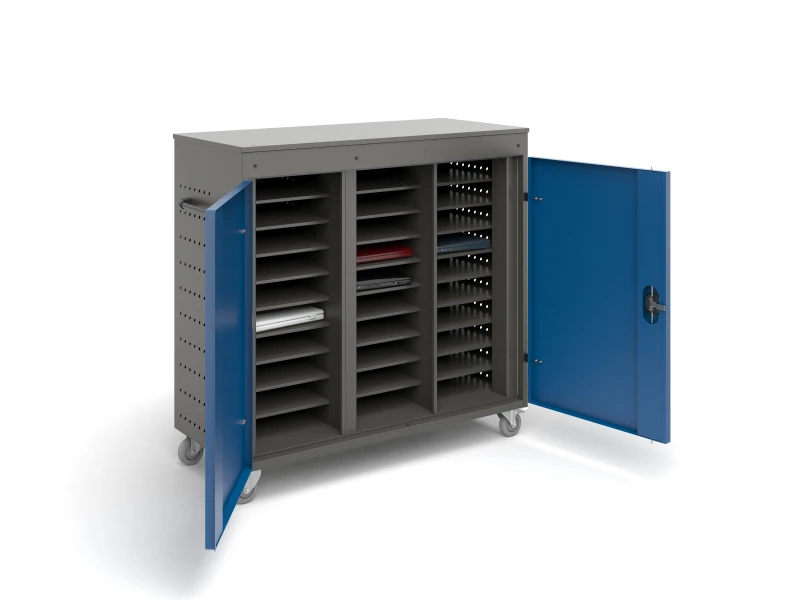 - inside the cabinet there are 30 compartments, each of which has a dedicated separate socket on the power strip, hence all devices stored in the cabinet can be simultaneously charged,