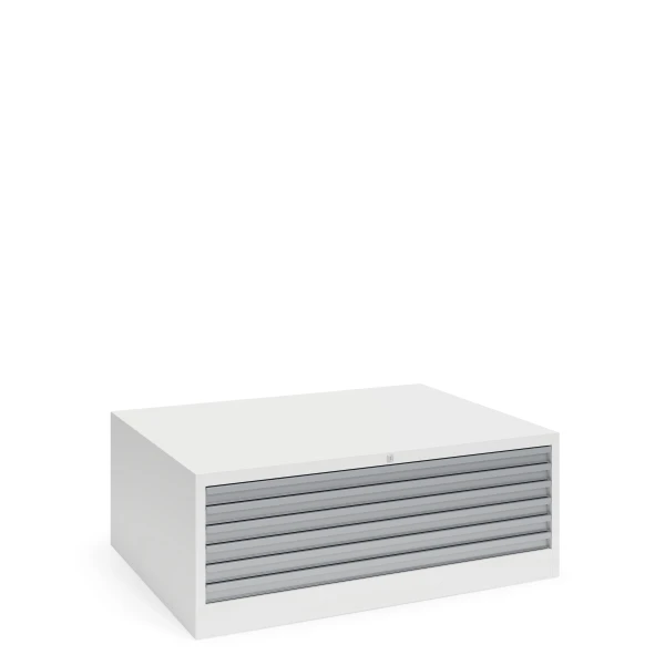 File cabinet with 6 drawers designed for horizontal storing of maps and plans in A0 size.
