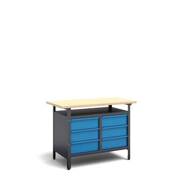 - workbench is provided with 2 lockers with 3 drawers each, each drawer of the following dimensions [mm]: external 154 H x 430 W x 542 D, internal 143 H x 390 W x 518 D,