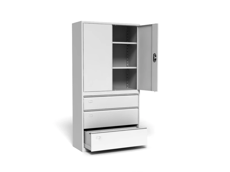 2. bottom file section of the cabinet is provided with 2 drawers for horizontal storing of A4 files or suspension files and 1 shallow drawer (215 mm high) for storing other office supplies.