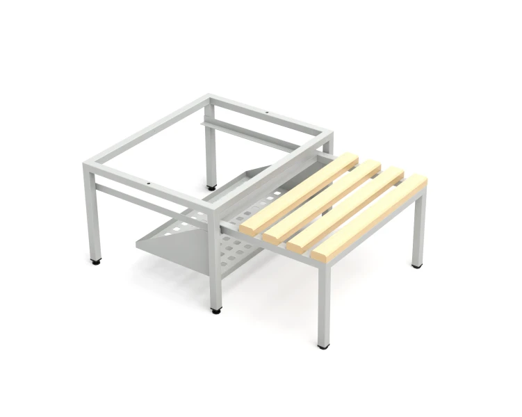 - metal frame suitable to place a locker on its top. The said locker is screwed onto the frame.