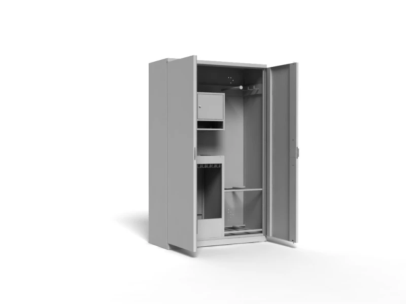 - doors are locked with a key lock with a hand wheel, with 3-point locking system,