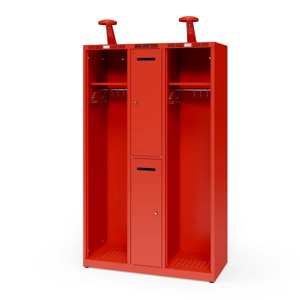 Three-colunm fire station cabinet for two firefighters