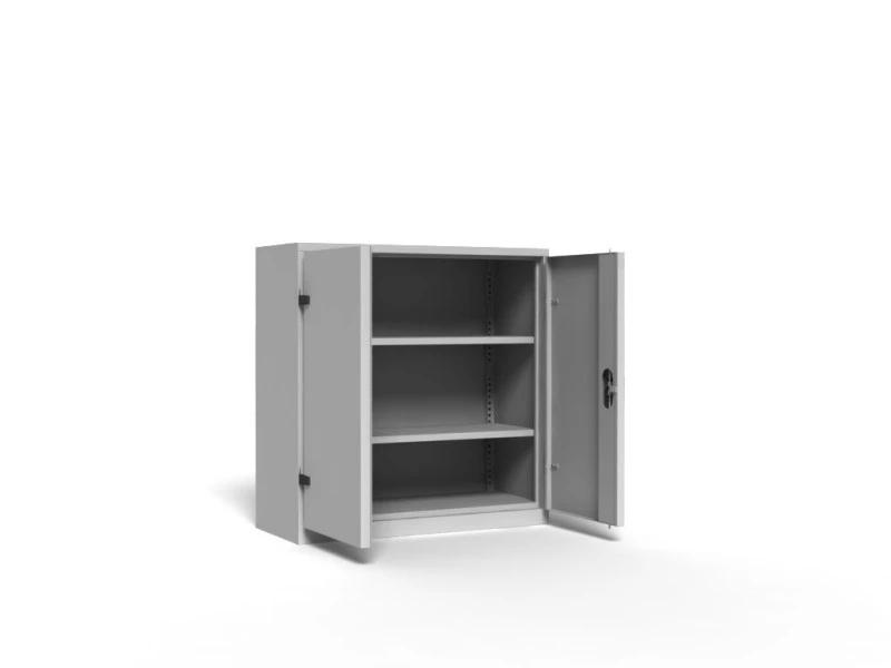 - workshop cabinet of solid structure with double full hinged doors, with reinforcing profile,