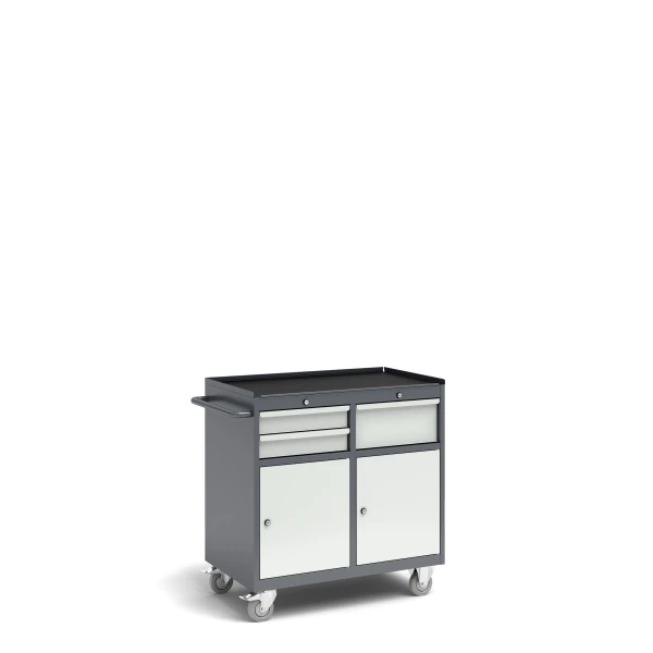 - The cart is provided with 2 casters with a brake and 2 casters without a brake, as well as a holder to move the cart.